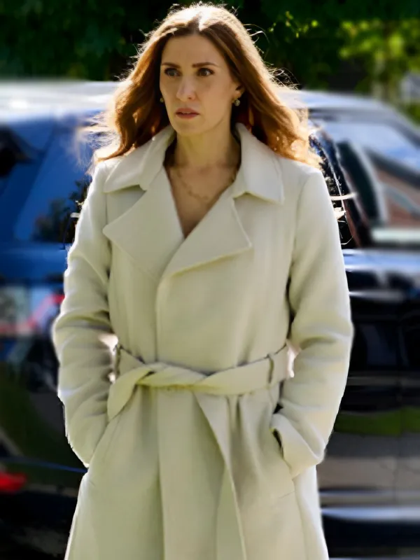 SurrealEstate S3 Sarah Levy Cream Belted Trench Coat