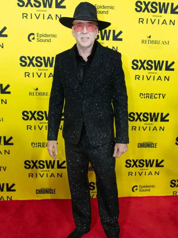SXSW Festival 2025 Nicolas Cage Black Sparkly Suit