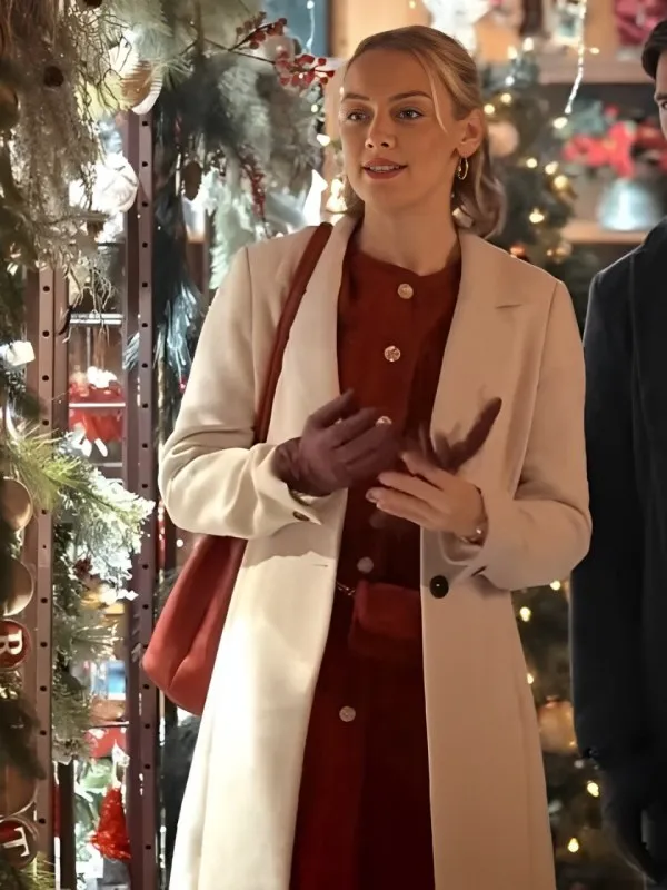 Rachel Skarsten TV Movie The Christmas Charade 2024 Whitney Long Wool Coat – White