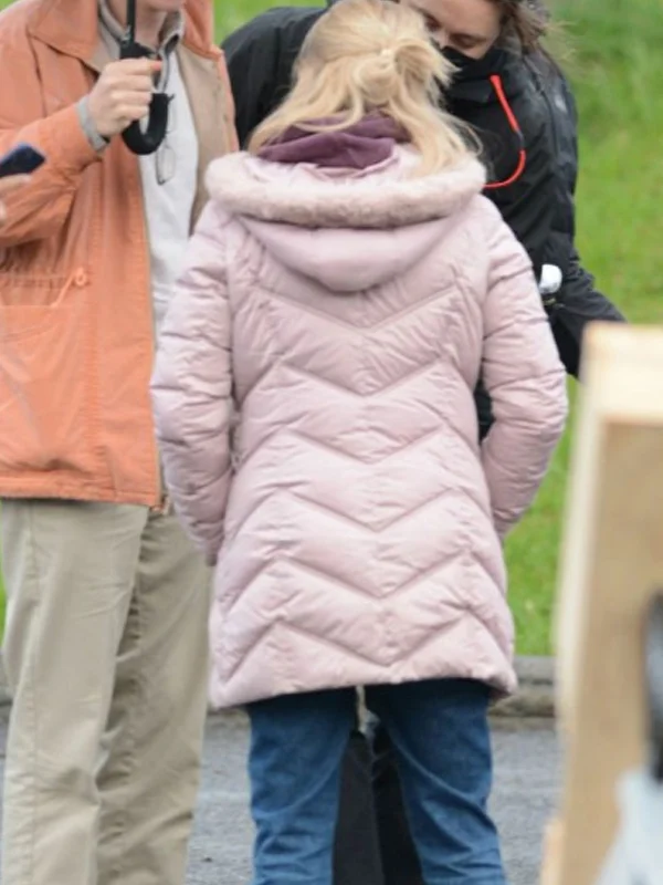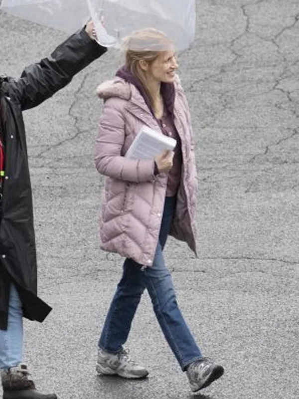 Jessica Chastain Film The Good Nurse 2022 Pink Puffer Jacket with Hood