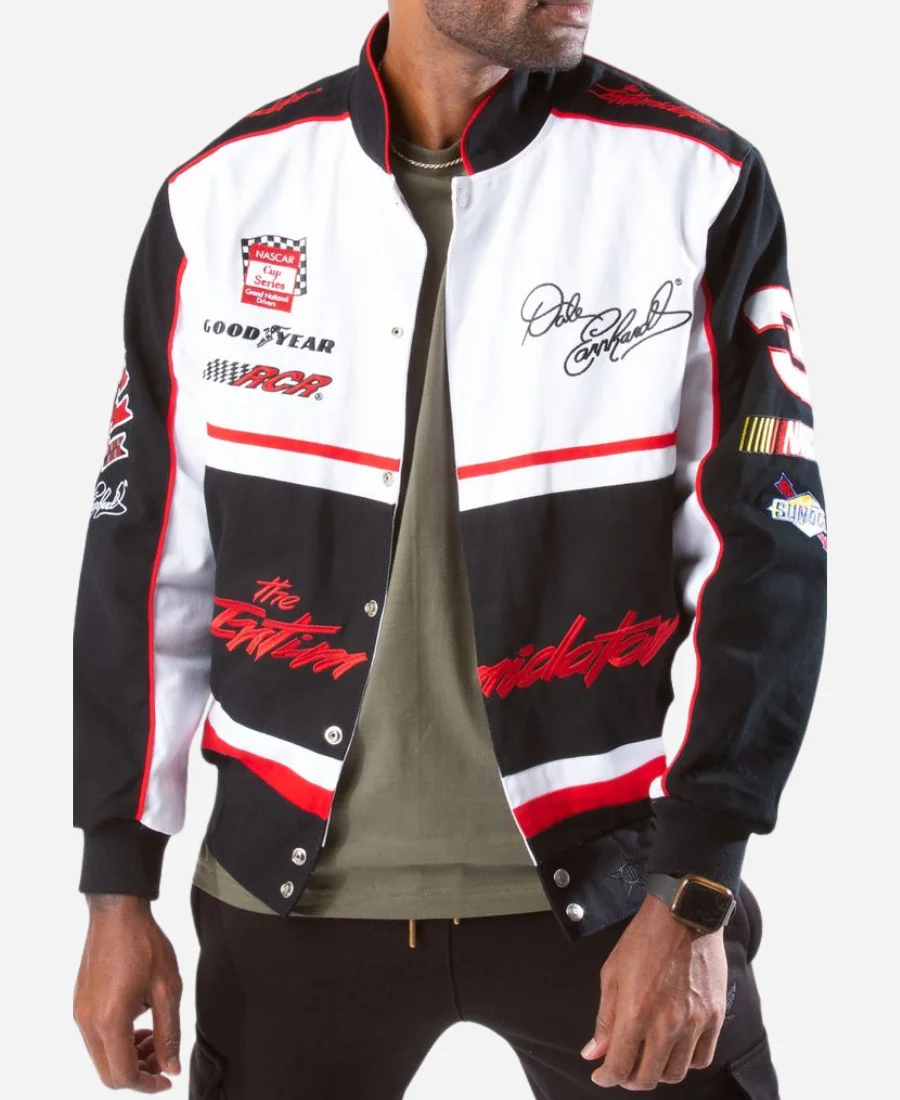 Shop Now the The Intimidator Dale Earnhardt Nascar Black & White Jacket | Real American Jackets
