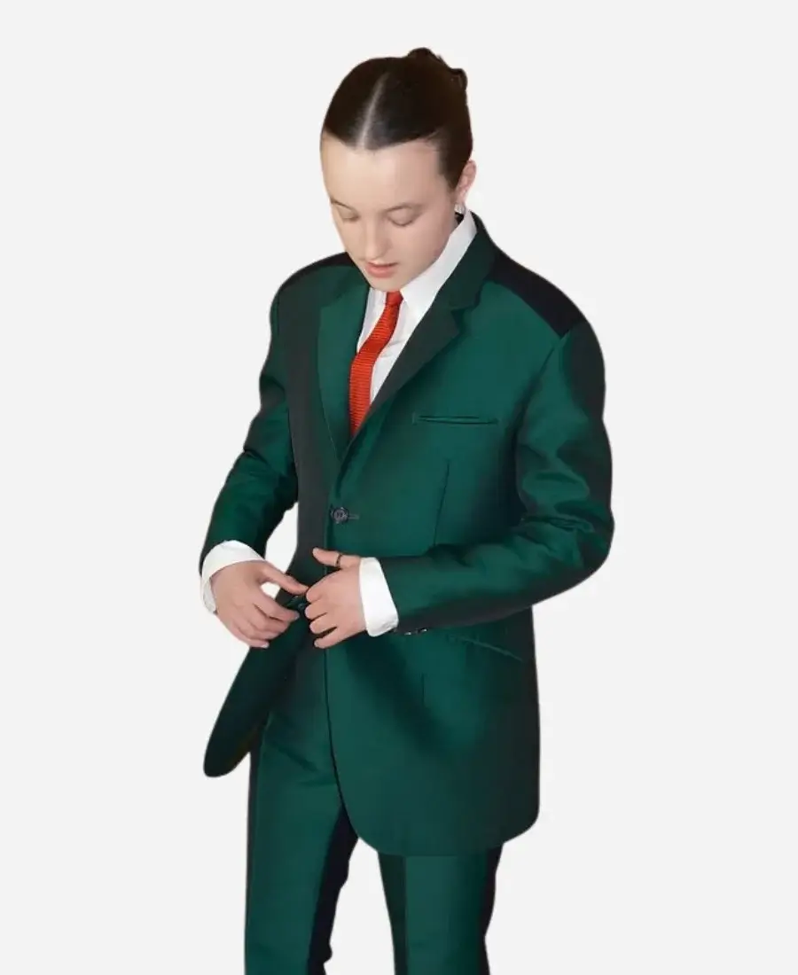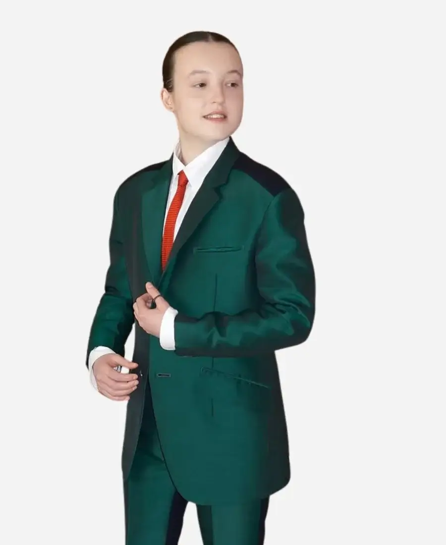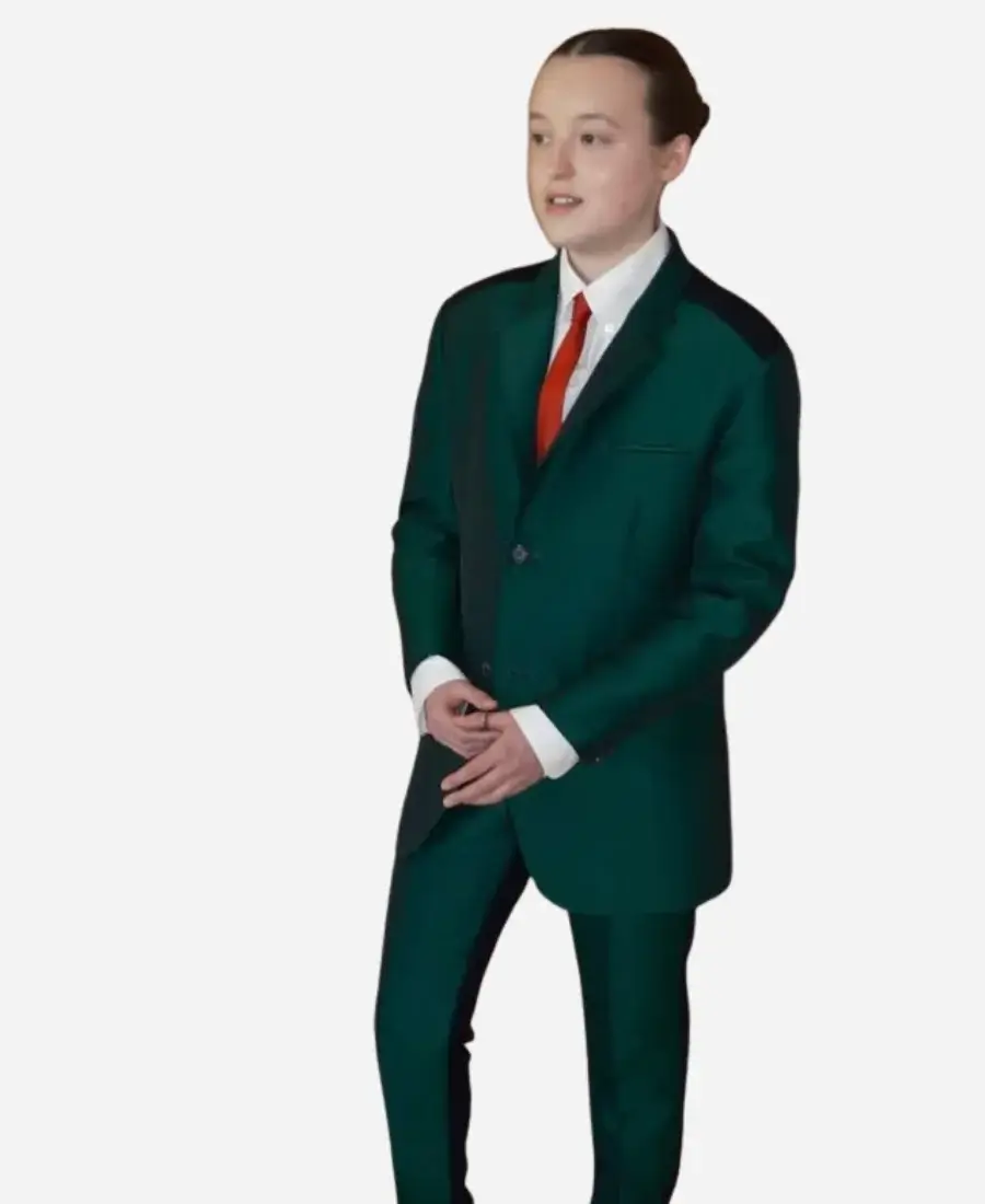The Last of Us S02 Premiere Green Bella Ramsey Suit is a blend of confidence, personality, and modern looks. It is inspired by Bella Ramsey’s standout premiere look; this suit can give you bold and classic elegance.