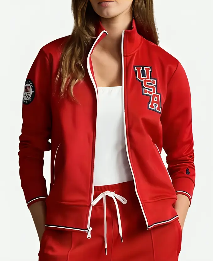 Shop Now the The Today Show Hoda Kotb Red Olympic 2024 Team USA Track Jacket | Only at Real American Jacket