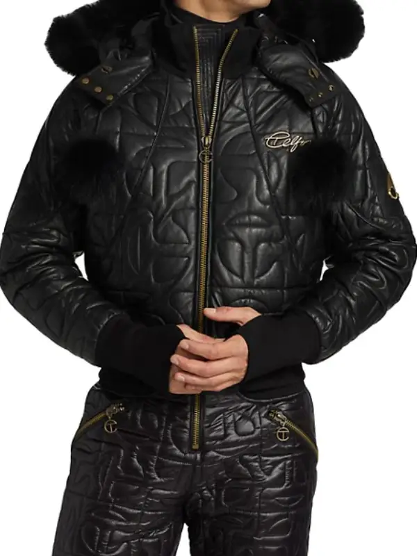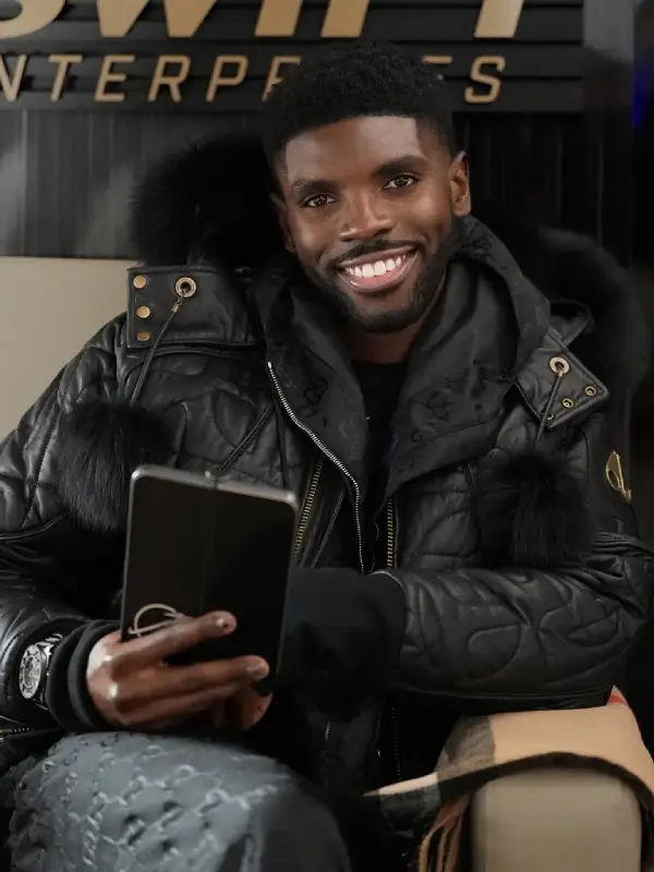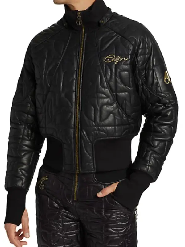 Tian Richards Black Leather Tom Swift Bomber Jacket With Hood