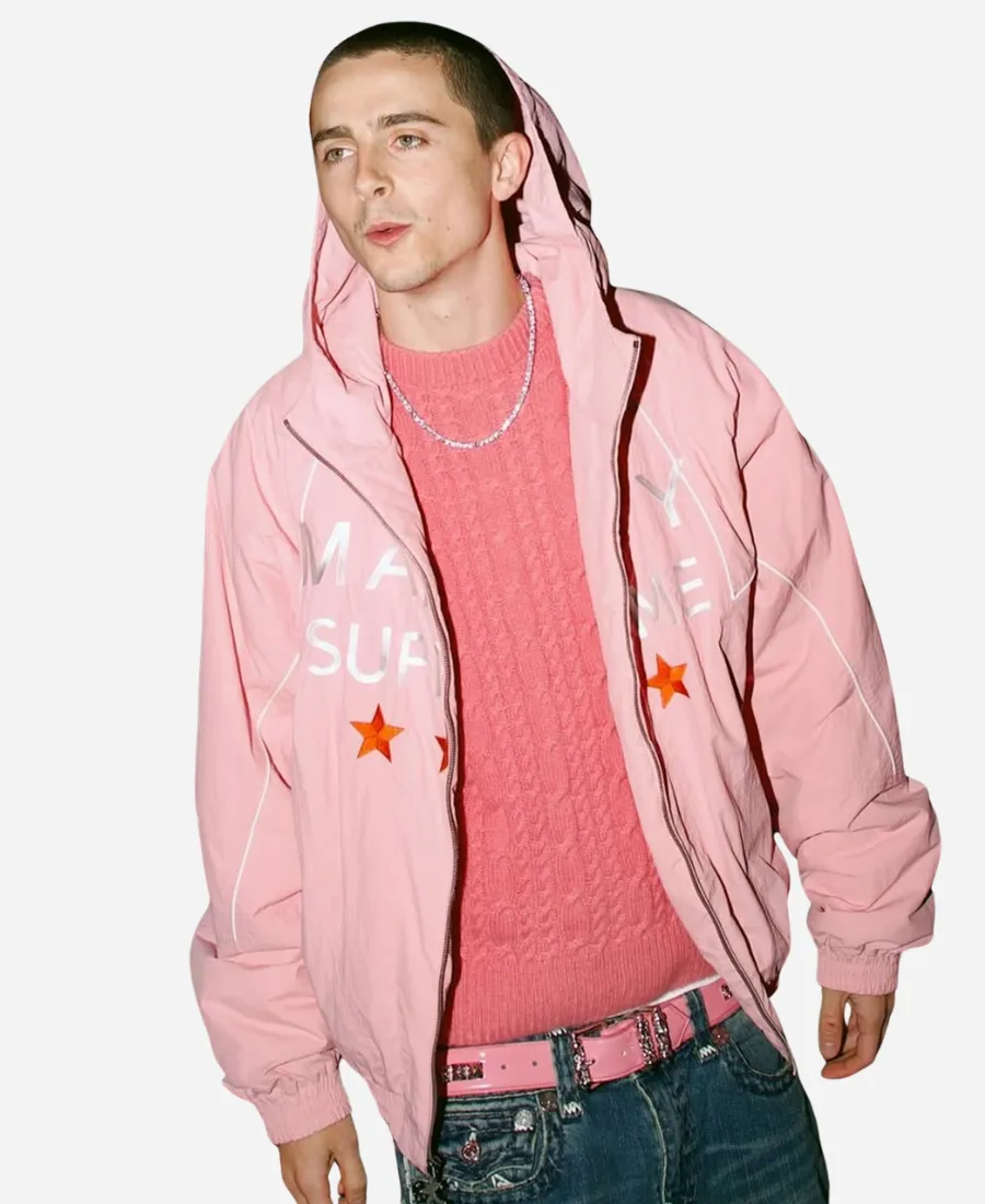 Timothée Chalamet Marty Supreme Pink Hooded Jacket – For Sale