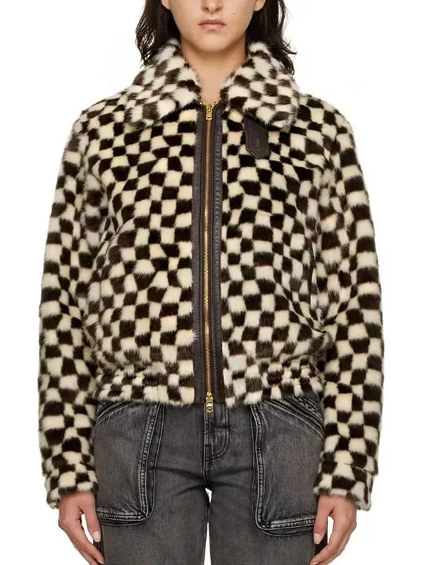 Travis Kelce Checkered Faux Fur Jacket