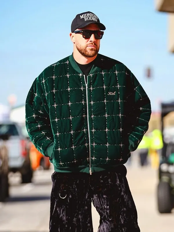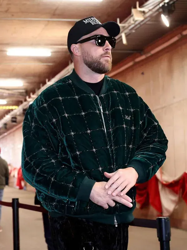 Travis Kelce Kith Beaded Velvet Clay Bomber Jacket