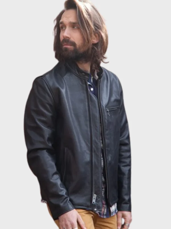 Waxed Natural Pebbled Cowhide Café Leather Jacket