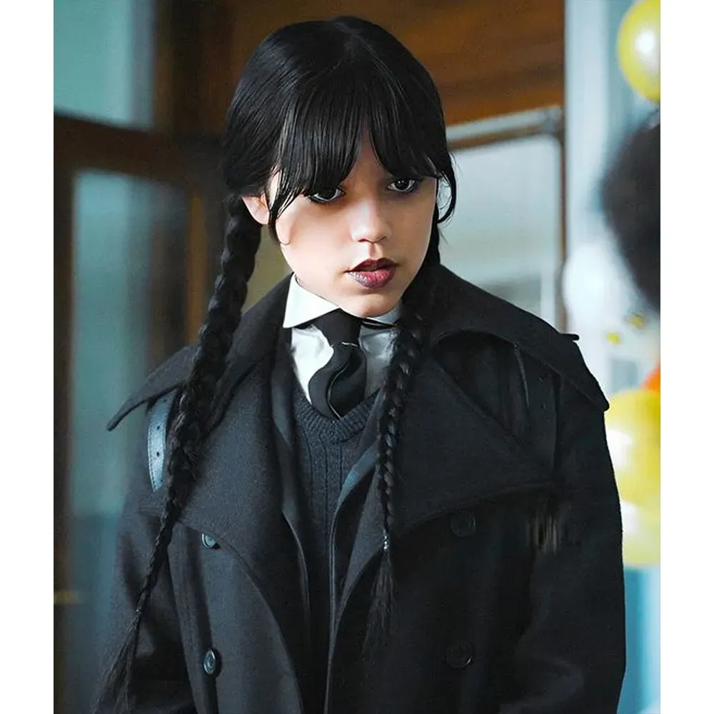 Jenna Ortega Wednesday Addams Black Trench Coat