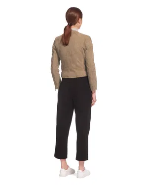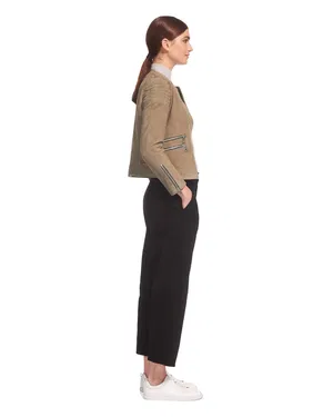 Women’s Collarless Khaki Suede Leather Jacket