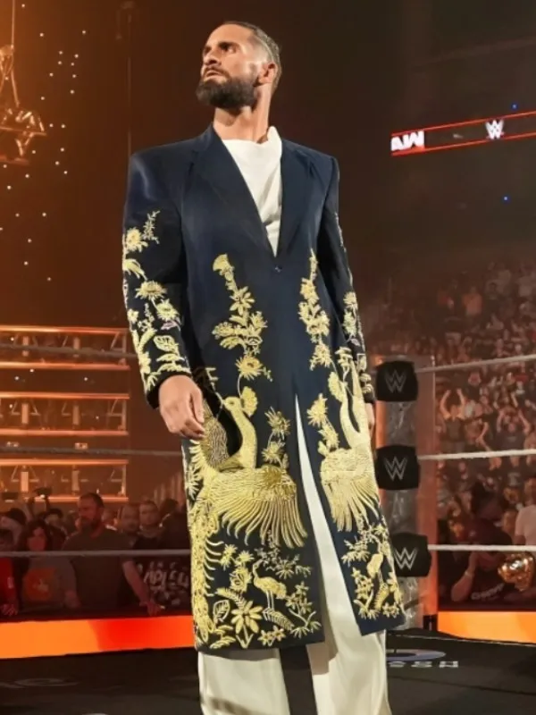 WWE RAW Seth Rollins Golden Peacock Long Coat